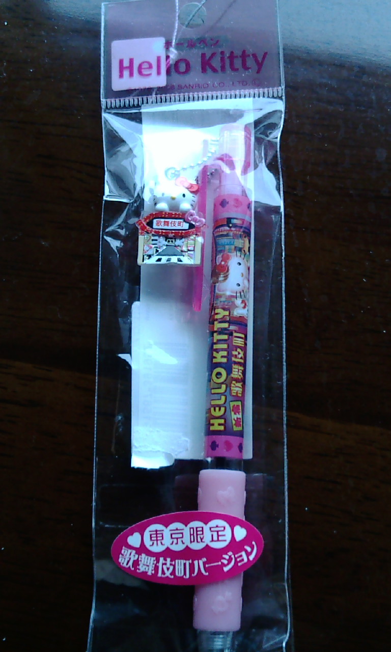 ご当地キティちゃんボールペン 歌舞伎町バージョン。これも同じく東京駅で買いました。
