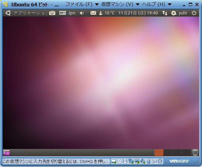 なんだか悔しかったので(もしくはミーハー心)、Ubuntu10.10 の64ビット版をVMに入れることにしました。